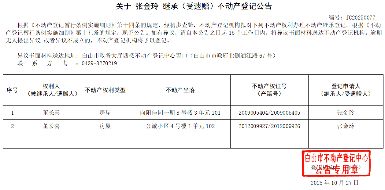 信息来源:白山市不动产登记中心