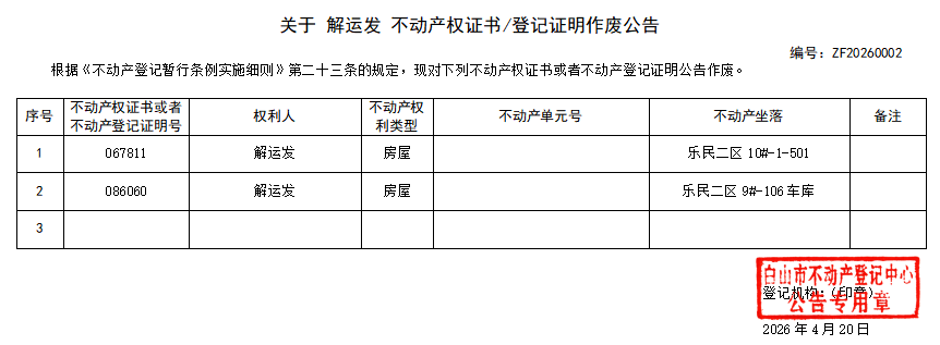 信息来源:白山市不动产登记中心