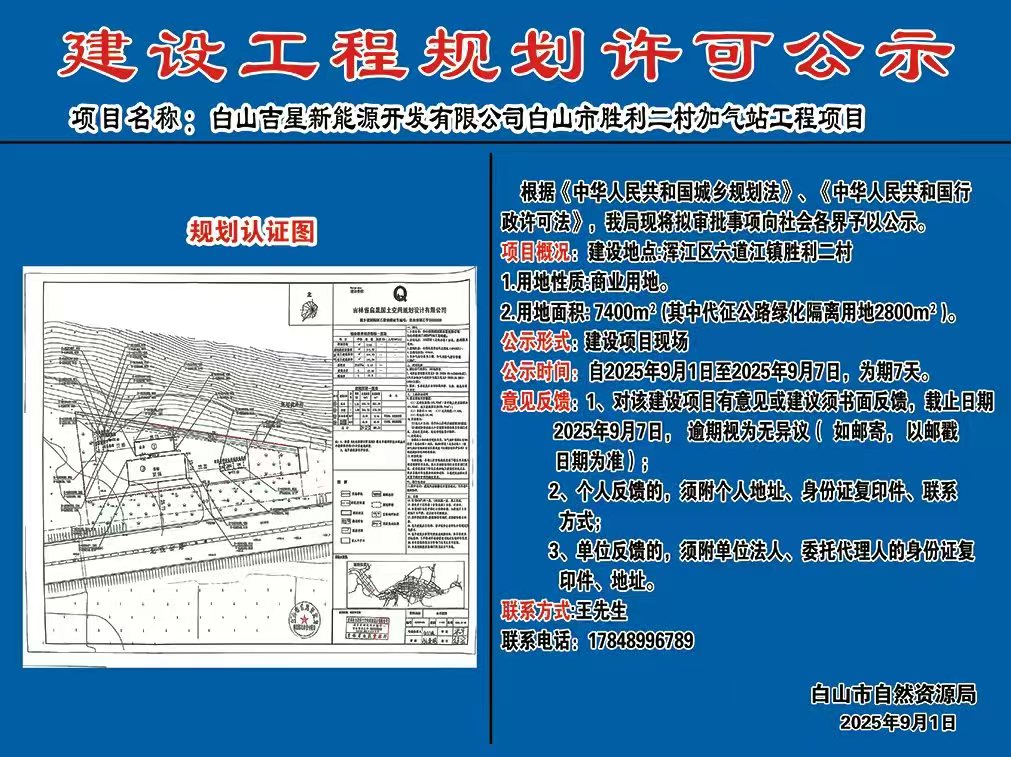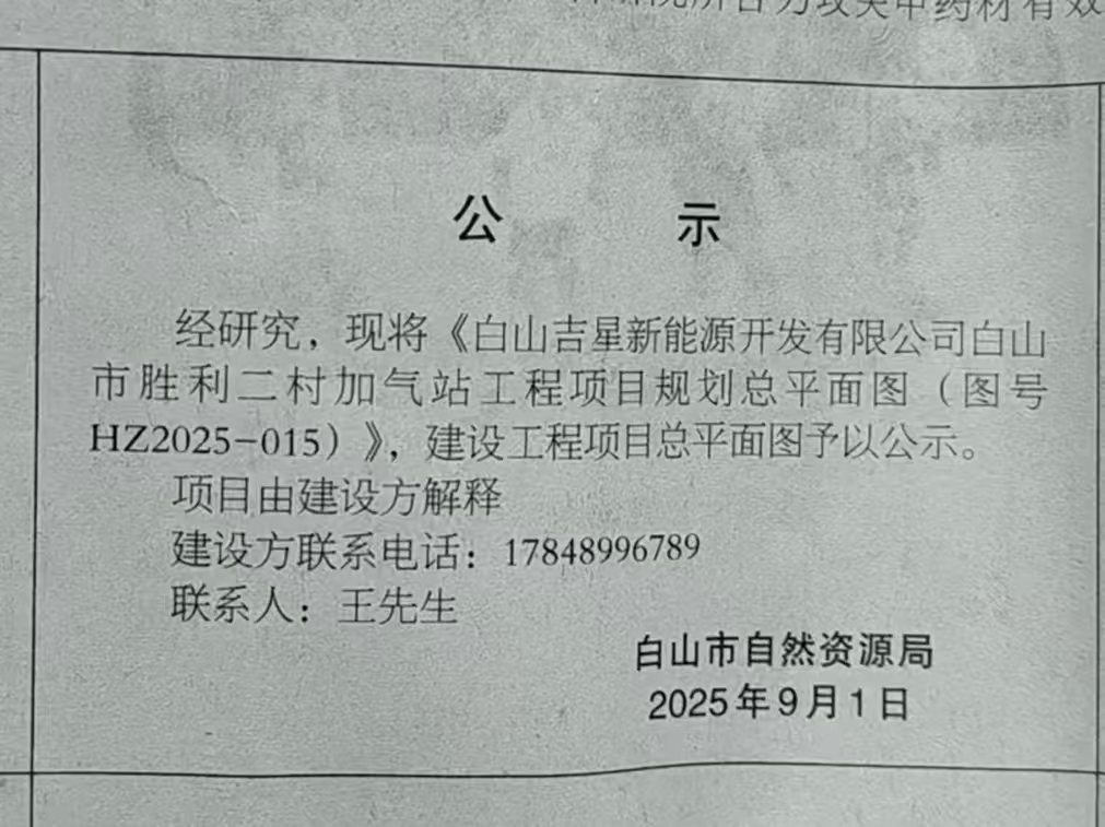 《白山吉星新能源开发有限公司白山市胜利二村加气站工程项目》公示