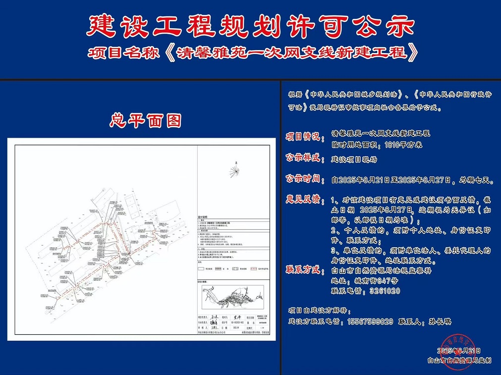 《清馨雅苑一次网支线新建工程》公示