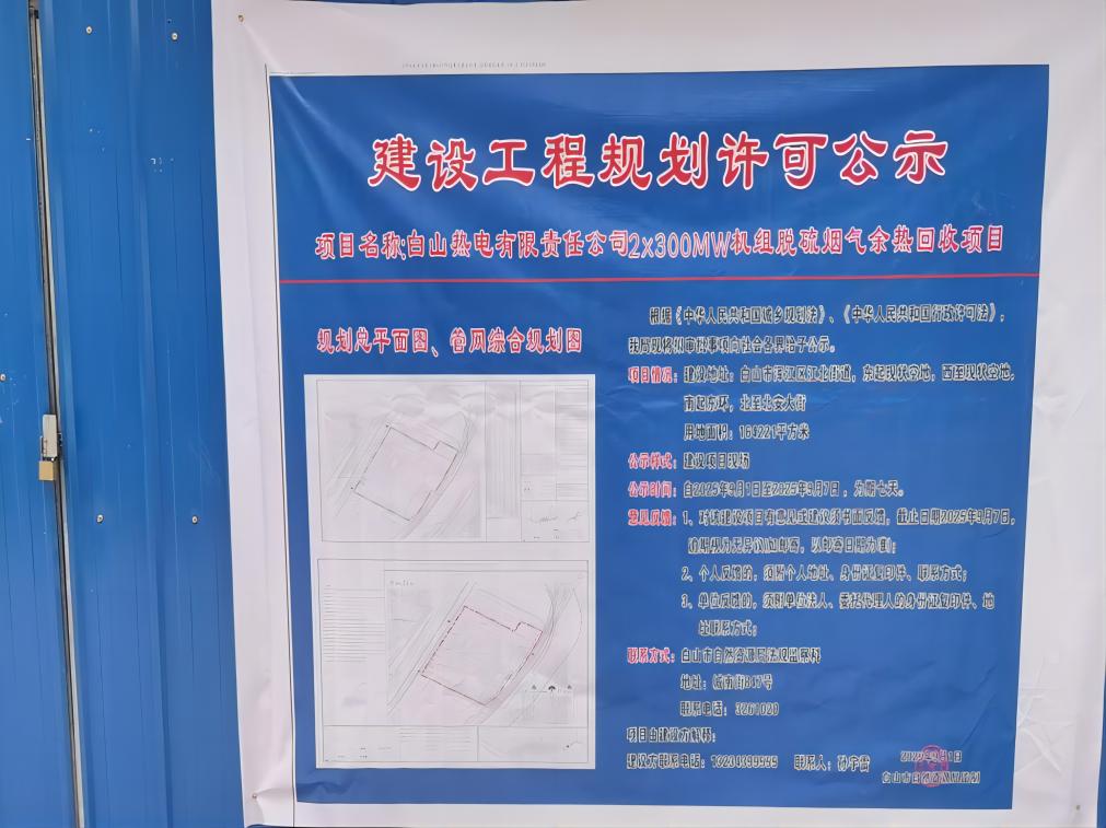 《白山热电有限责任公司2×300MW机组脱硫烟气余热回收项目》公示