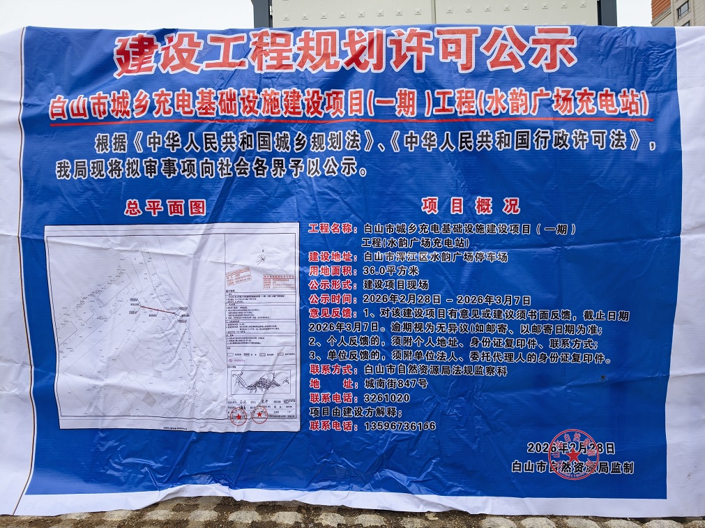 《白山市城乡充电基础设施建设项目(一期)工程(水韵广场充电站)》公示