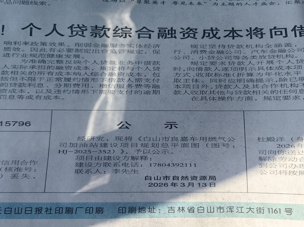 《白山市良嘉车用燃气公司加油站建设项目》公示