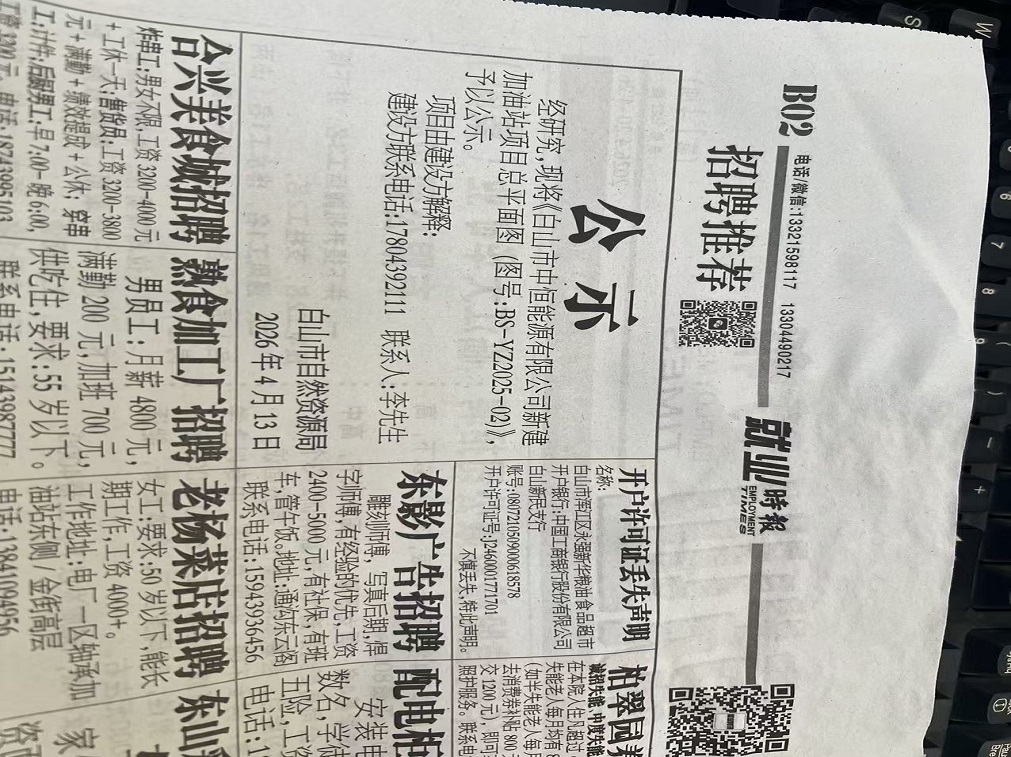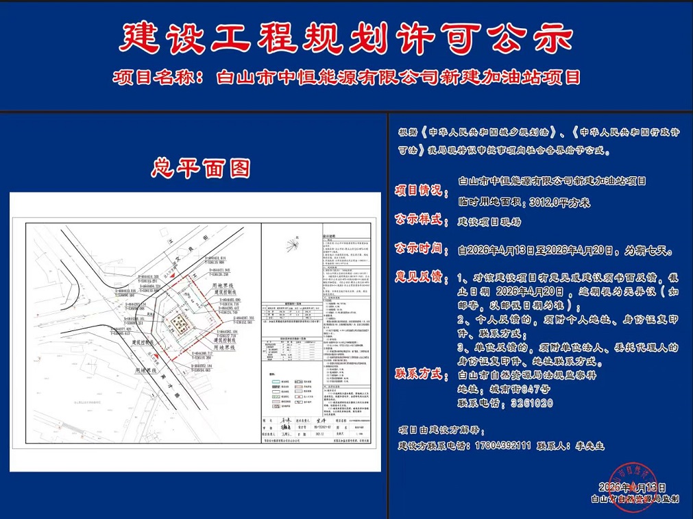 《白山市中恒能源有限公司新建加油站项目》公示