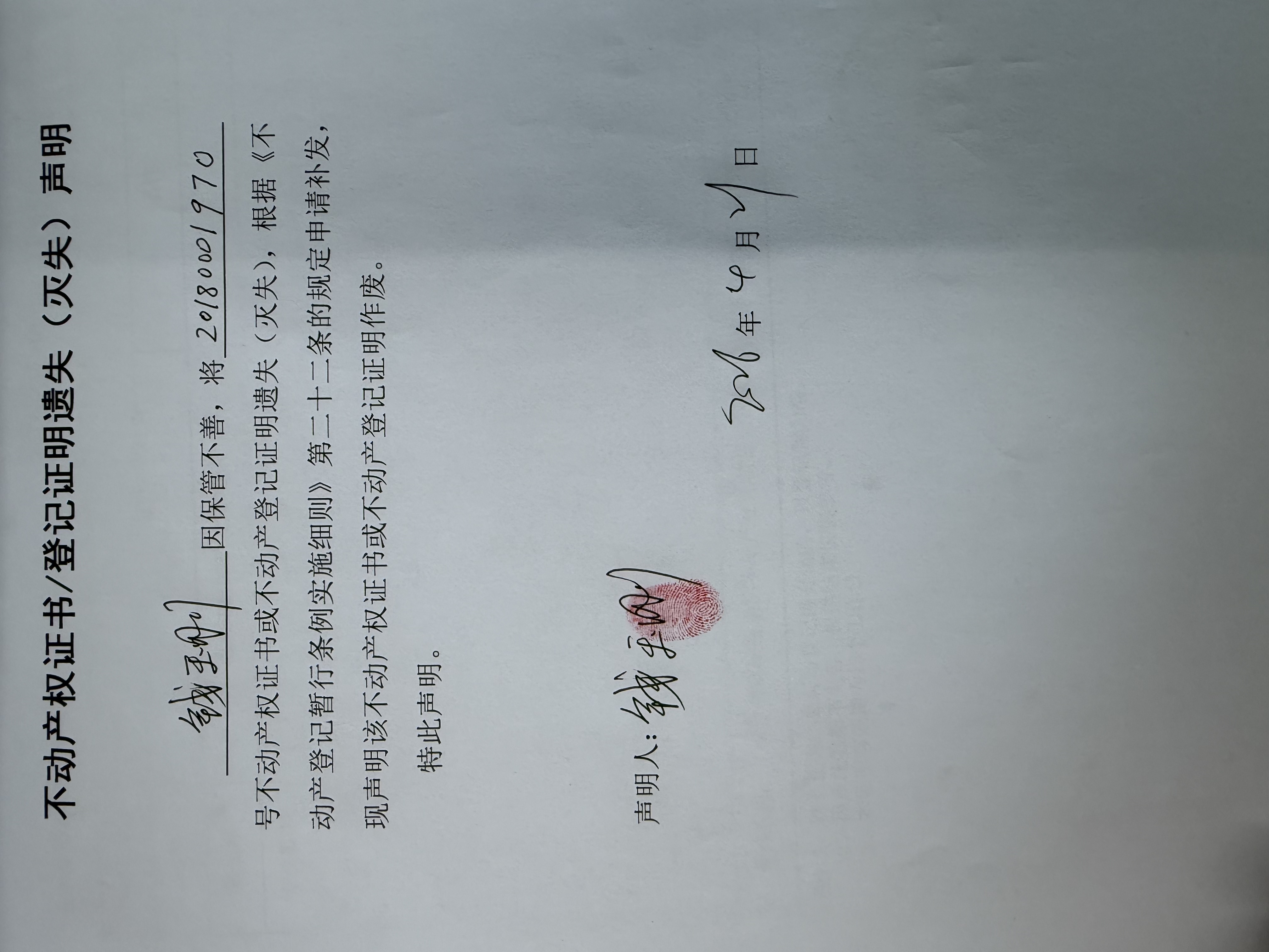 不动产权证书/登记证明遗失(灭失)声明