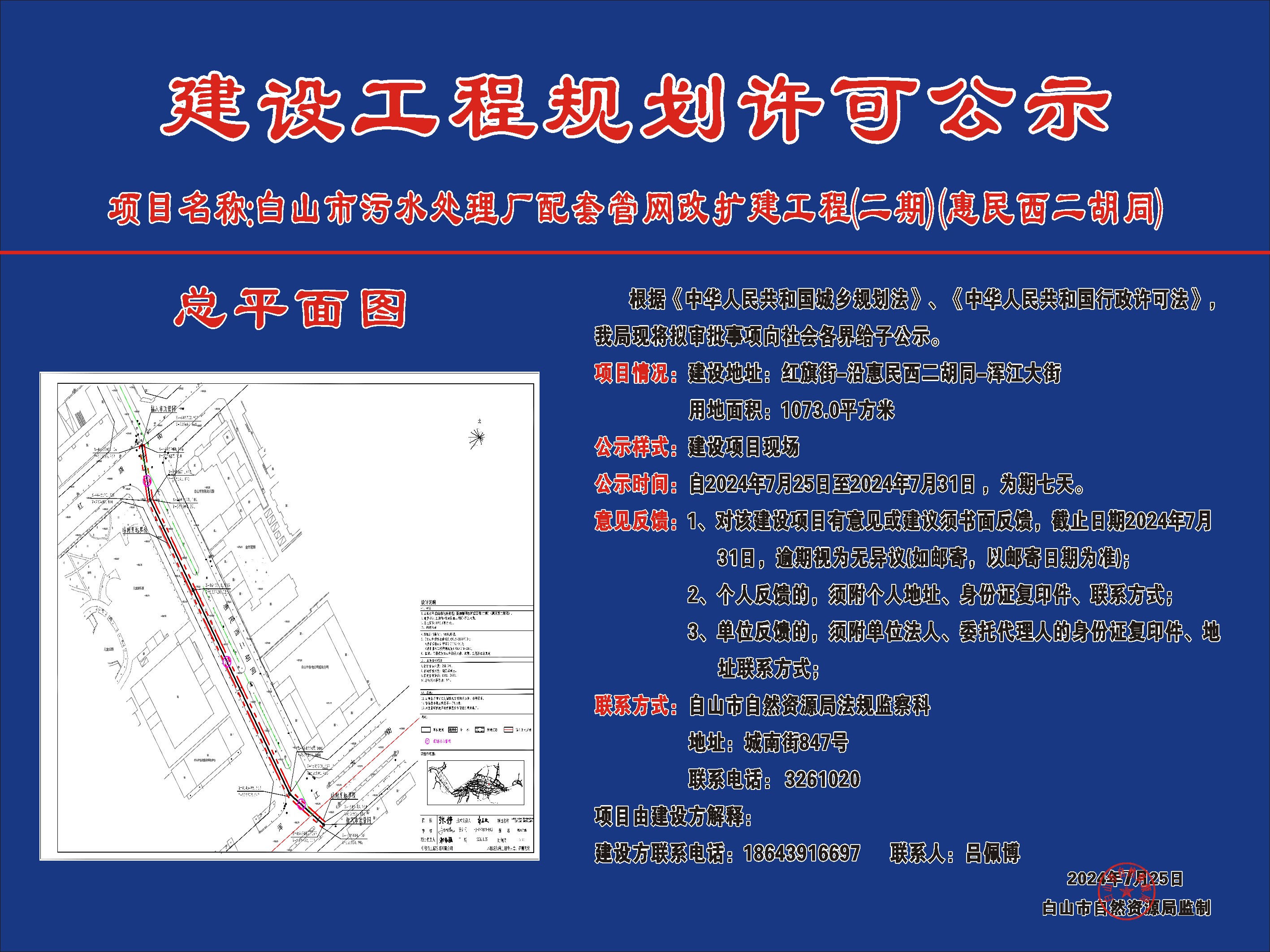 白山市污水处理厂配套管网改扩建工程(二期)(惠民西二胡同)公示
