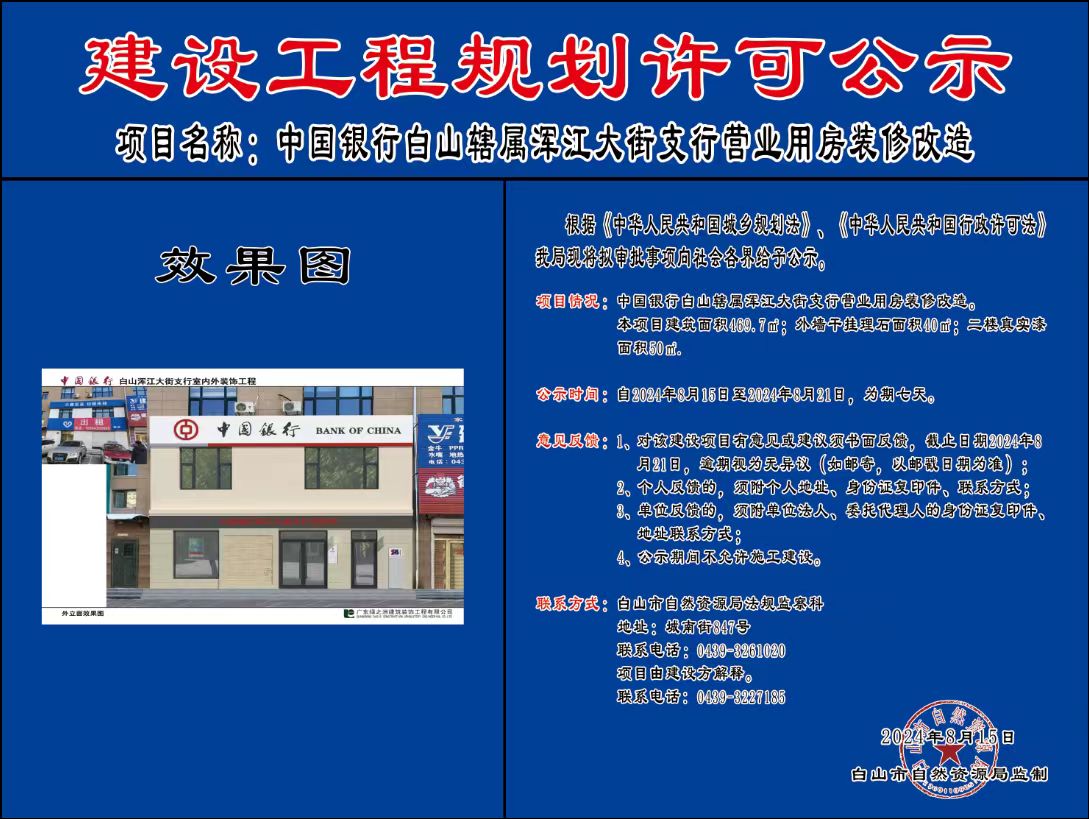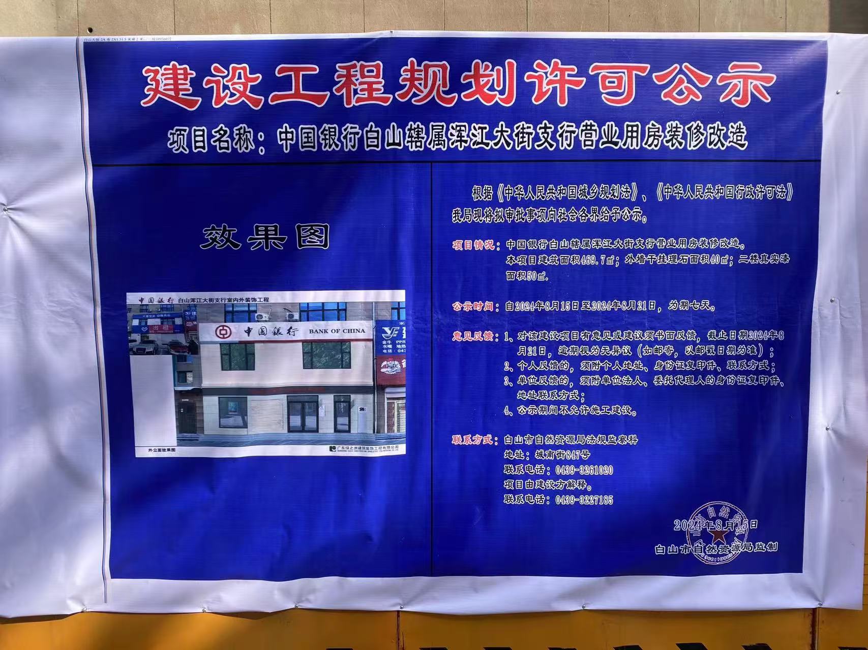 《中国银行白山辖属浑江大街支行营业用房装修改造》公示