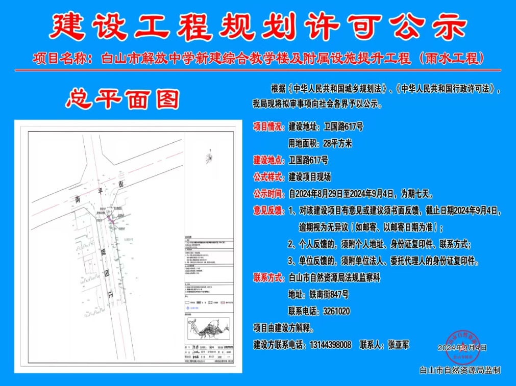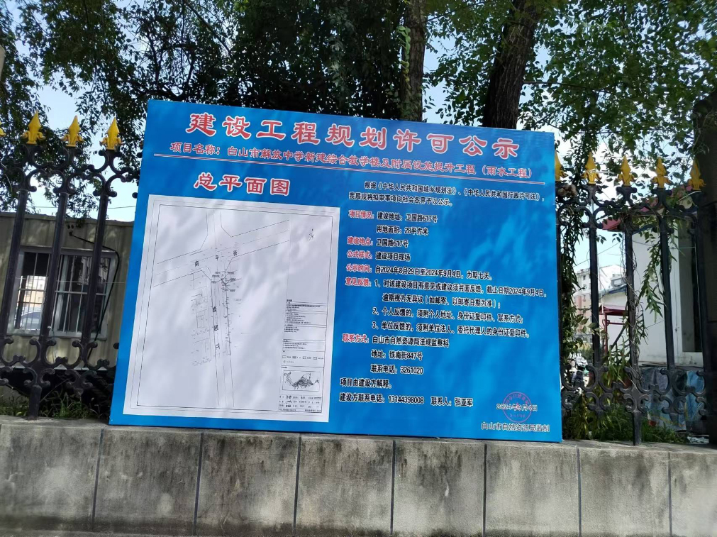 白山市解放中学新建综合教学楼及附属设施提升工程(雨水工程)公示