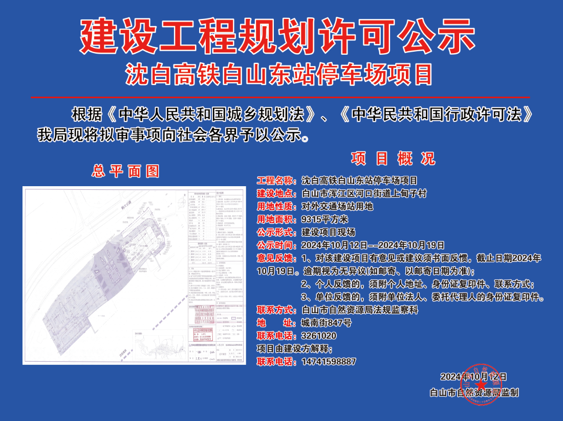 沈白高铁白山东站停车场项目公示