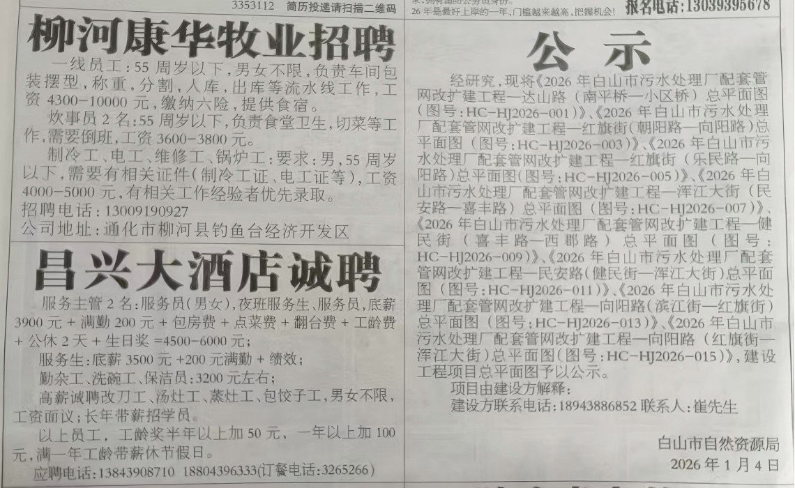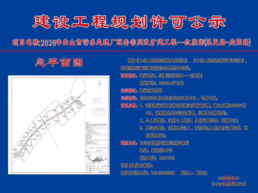 《2026年白山市污水处理厂配套管网改扩建工程——红旗街(乐民路-向阳路)》公示