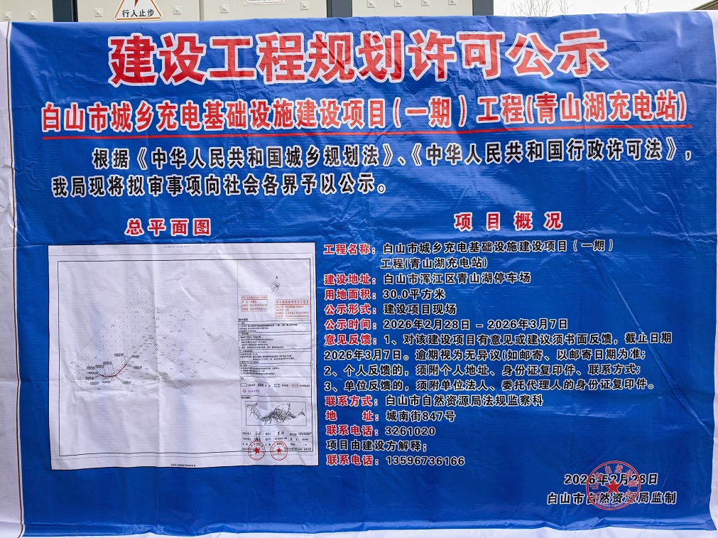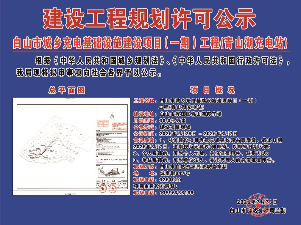 《白山市城乡充电基础设施建设项目(一期)工程(青山湖充电站)》公示