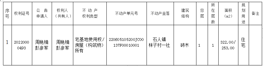 公告单位:江源区不动产登记中心 异议书面材料送达地址:江源区政务大厅二楼不动产登记中心 电话:0439-3721735