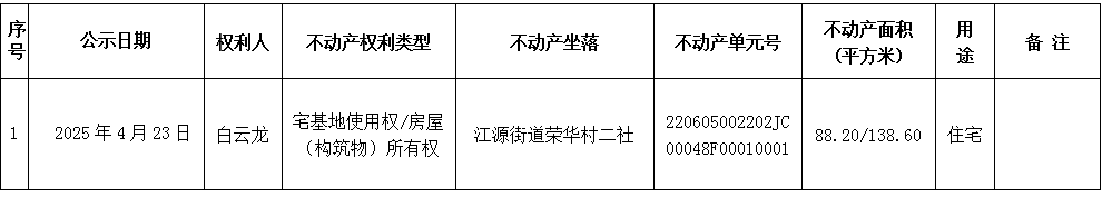 不动产首次登记公告(白云龙) 编号:2025000038