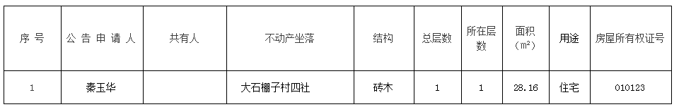 不动产权证丢失补证公告(秦玉华)202500080