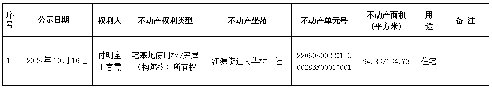 经初步审定,我机构拟对下列不动产权予以首次登记,根据《不动产登记暂行条例实施细则》第十七条的规定,现予公告。如有异议,请自本公告之日起1个工作日内将异议书面材料送达我机构。逾期无人提出异议或者异议不成立的,我机构将予以登记。
