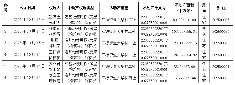 经初步审定,我机构拟对下列不动产权力予以首次登记,根据《不动产登记暂行条例实施细则》第十七条的规定,现予公告。如有异议,请自本公告之日起一个工作日内将异议书面材料送达我机构。逾期无人提出异议或者异议不成立的,我机构将予以登记。