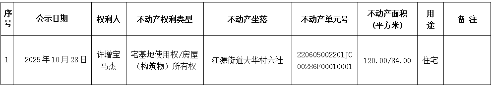 经初步审定,我机构拟对下列不动产权予以首次登记,根据《不动产登记暂行条例实施细则》第十七条的规定,现予公告。如有异议,请自本公告之日起1个工作日内将异议书面材料送达我机构。逾期无人提出异议或者异议不成立的,我机构将予以登记。