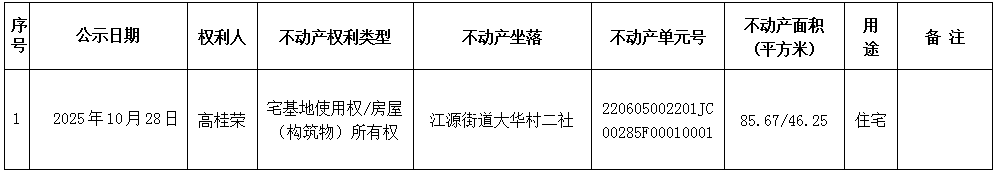 异议书面材料送达地址:江源区政务大厅二楼不动产登记中心 电话:3721735