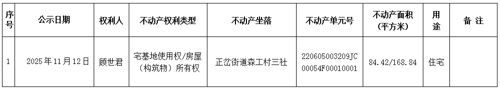 不动产首次登记公告(顾世君) 编号:2025000105
