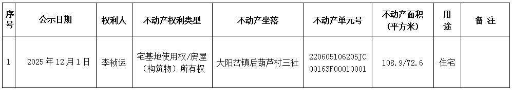 经初步审定,我机构拟对下列不动产权力予以首次登记,根据《不动产登记暂行条例实施细则》第十七条的规定,现予公告。如有异议,请自本公告之日起1个工作日内将异议书面材料送达我机构。逾期无人提出异议或者异议不成立的,我机构将予以登记。