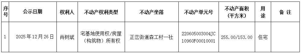 经初步审定,我机构拟对下列不动产权力予以首次登记,根据《不动产登记暂行条例实施细则》第十七条的规定,现予公告。如有异议,请自本公告之日起1个工作日内将异议书面材料送达我机构。逾期无人提出异议或者异议不成立的,我机构将予以登记。