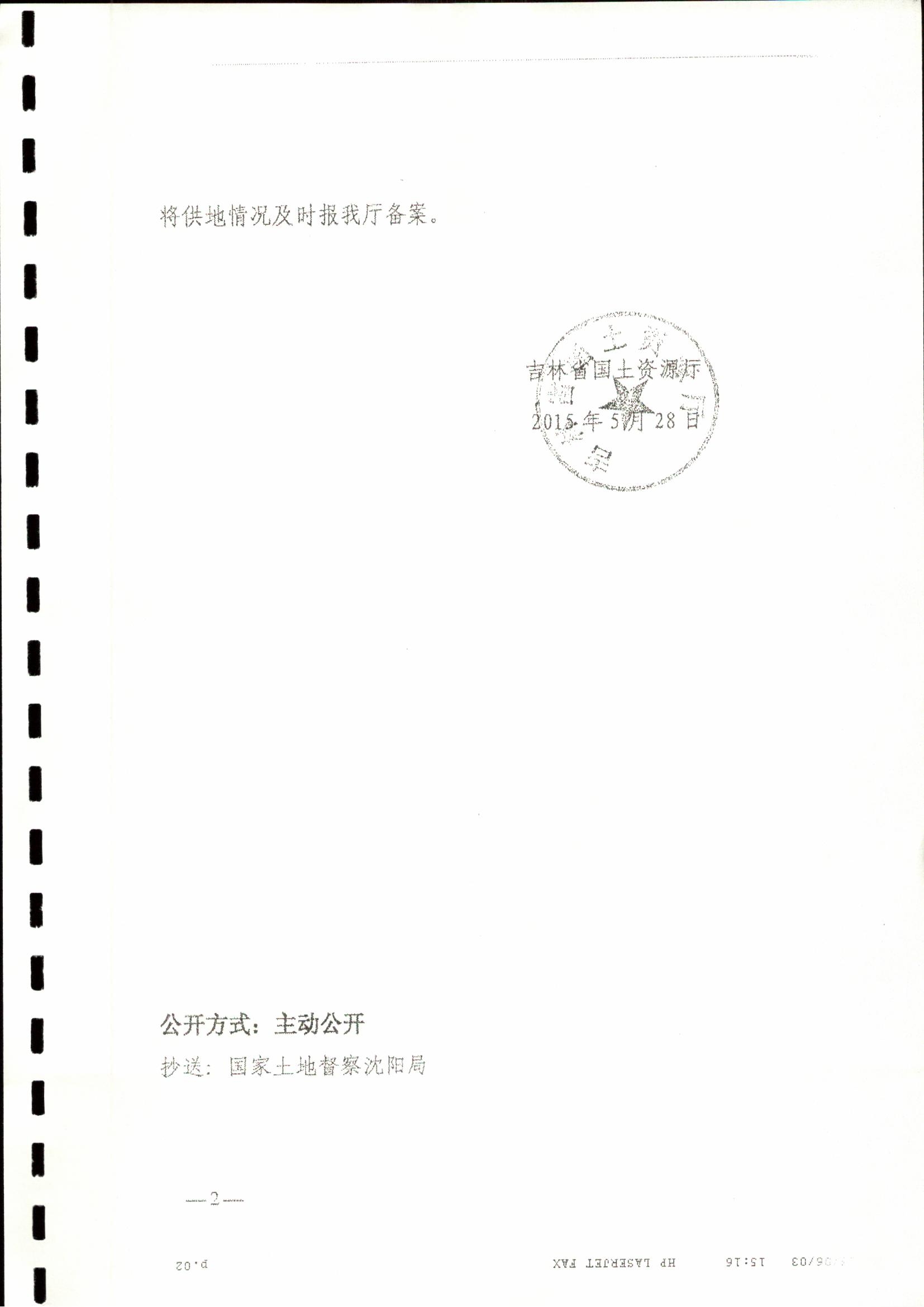 2. 批准文号:吉国土资耕函[2015]145号