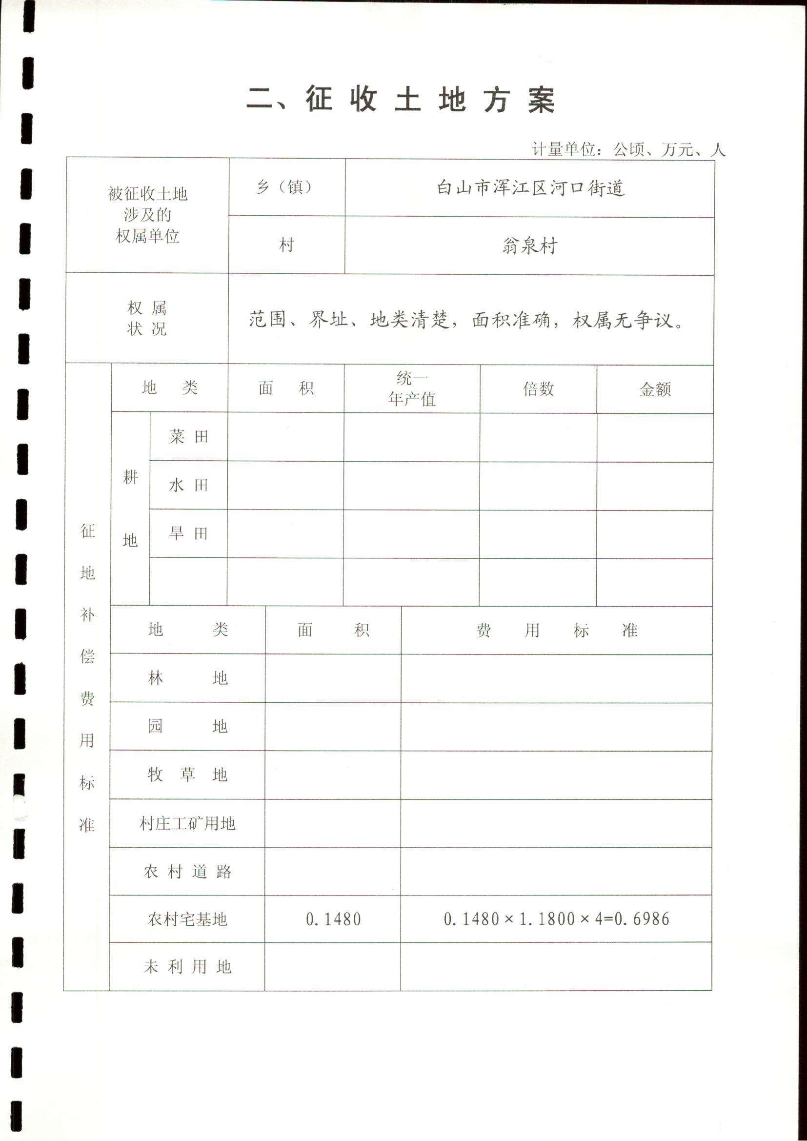 1、被征收土地面积和地类:征收河口街道瓮泉村集体土地0.1480公顷,全部为建设用地。