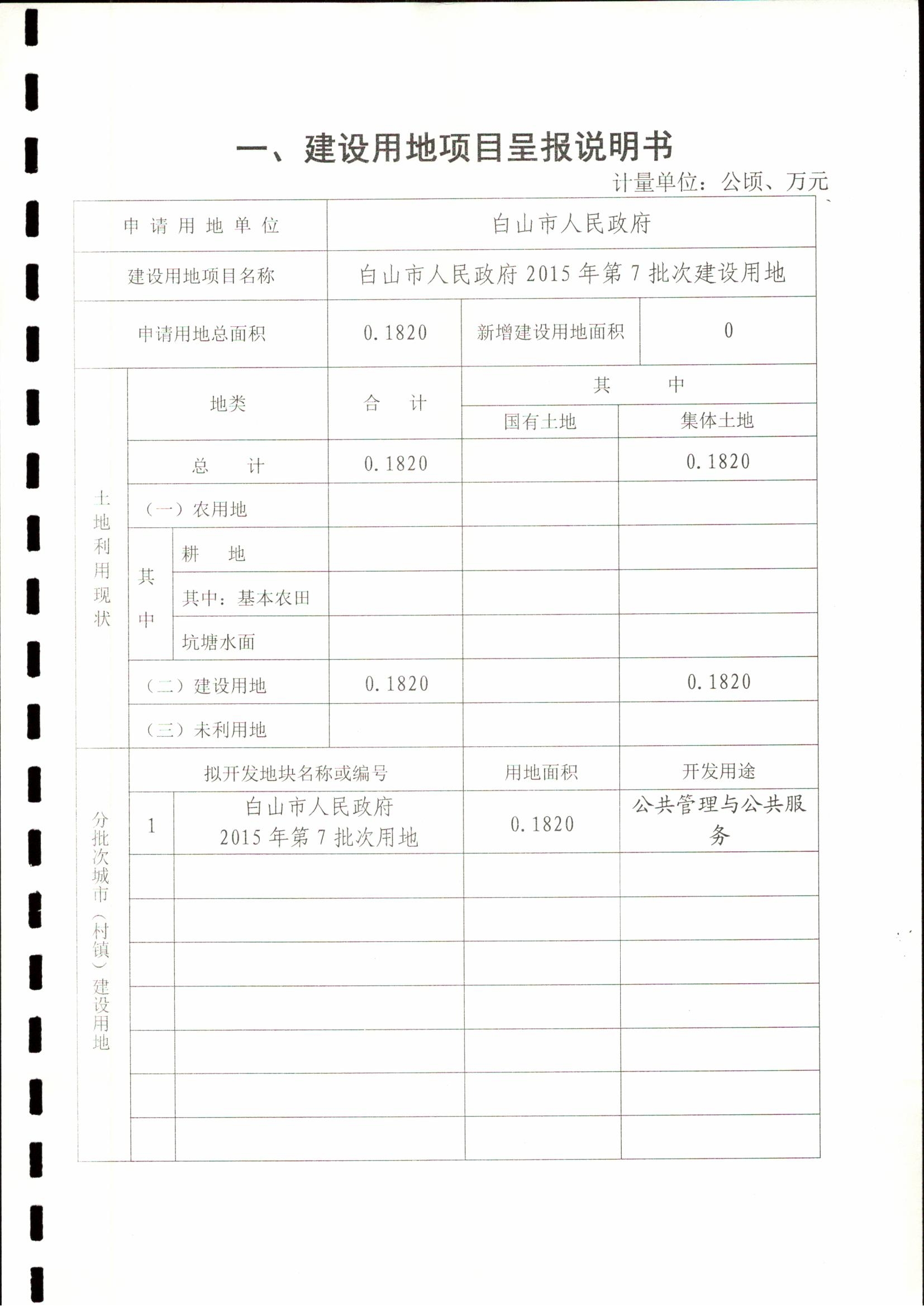 一、征用土地批准情况 白山市人民政府2015年第7批次