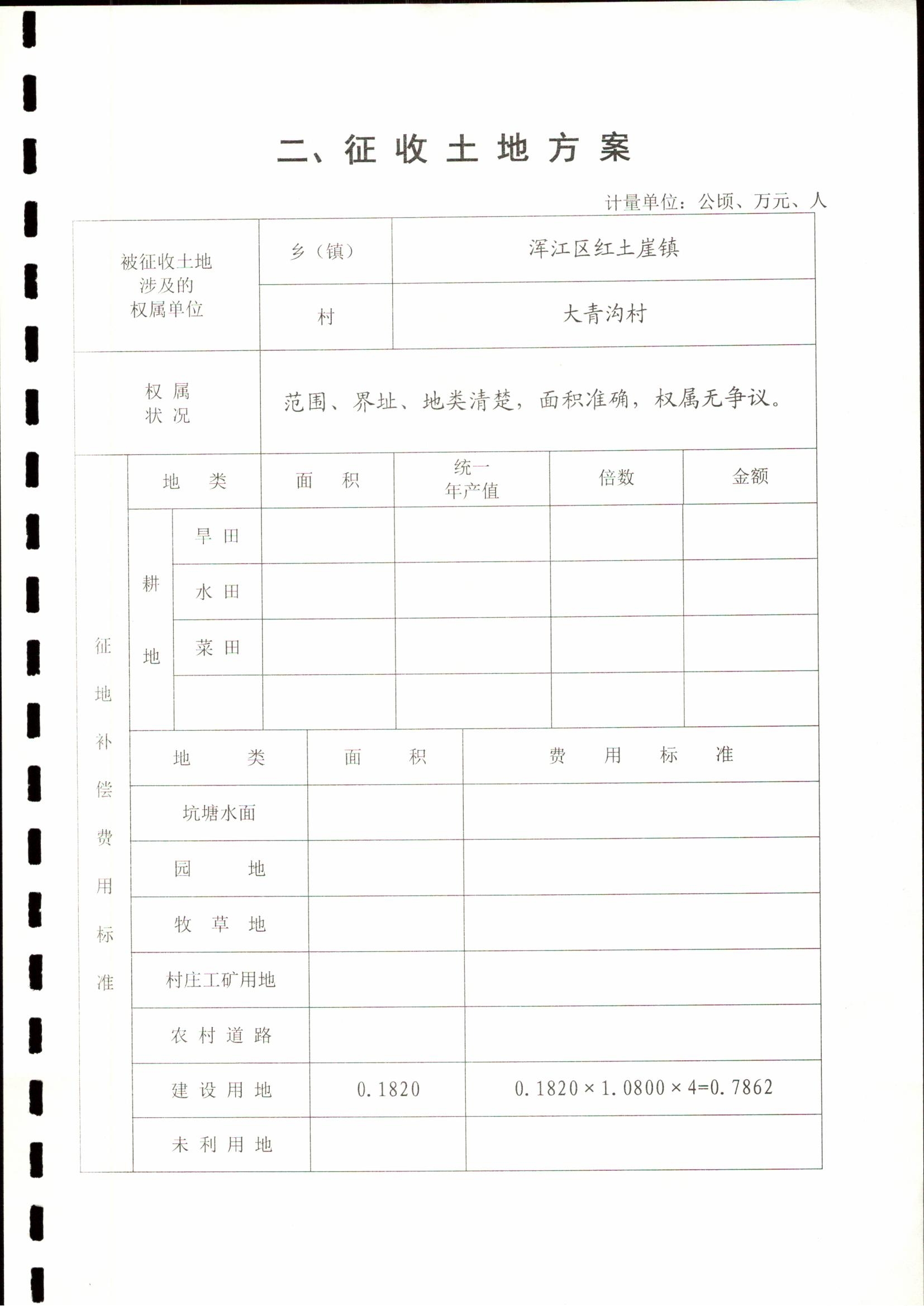 1、被征收土地面积和地类:征收红土崖镇大青沟村集体土地0.1820公顷,全部为建设用地。