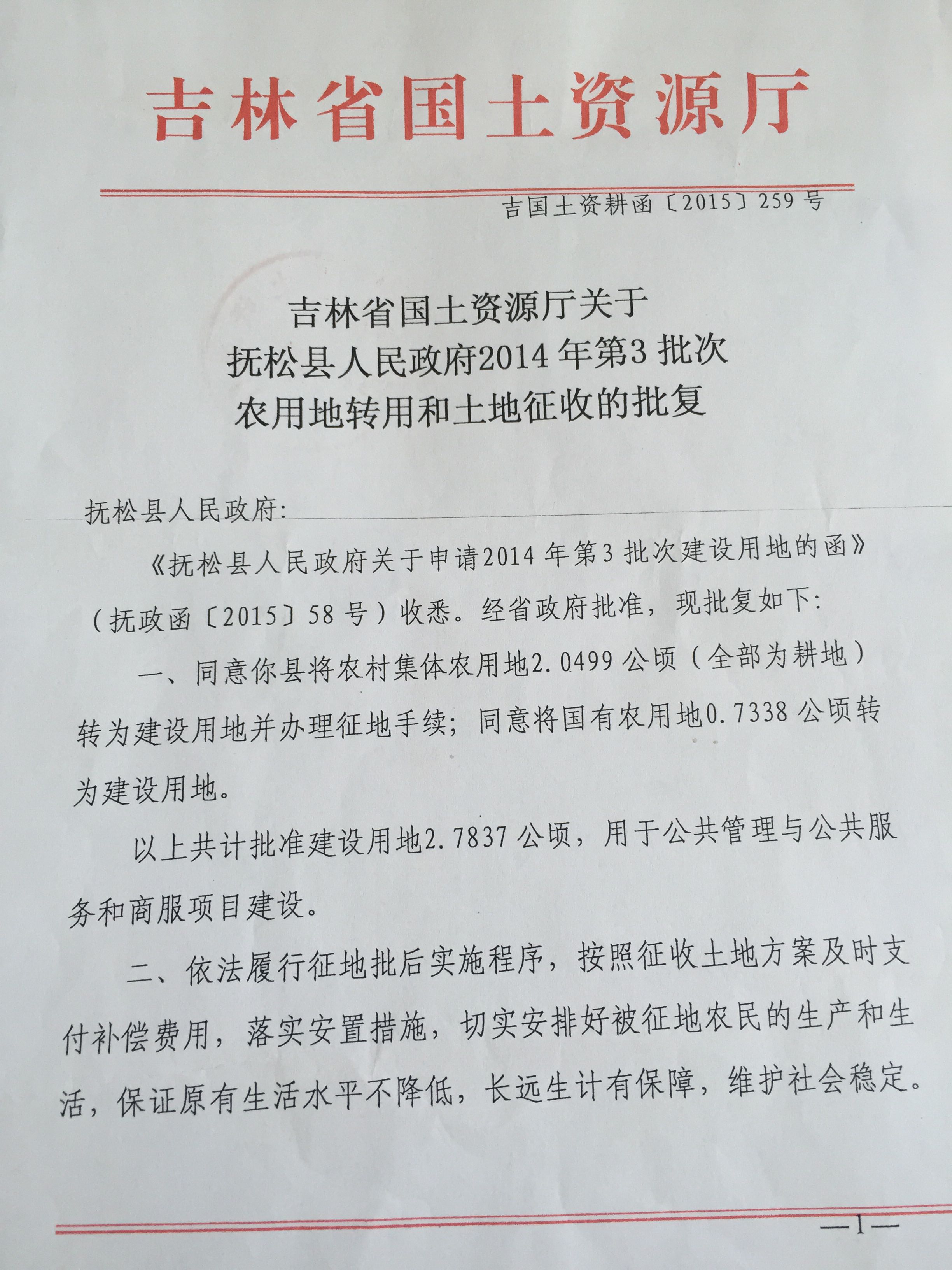 抚松县人民政府2014年3批次
